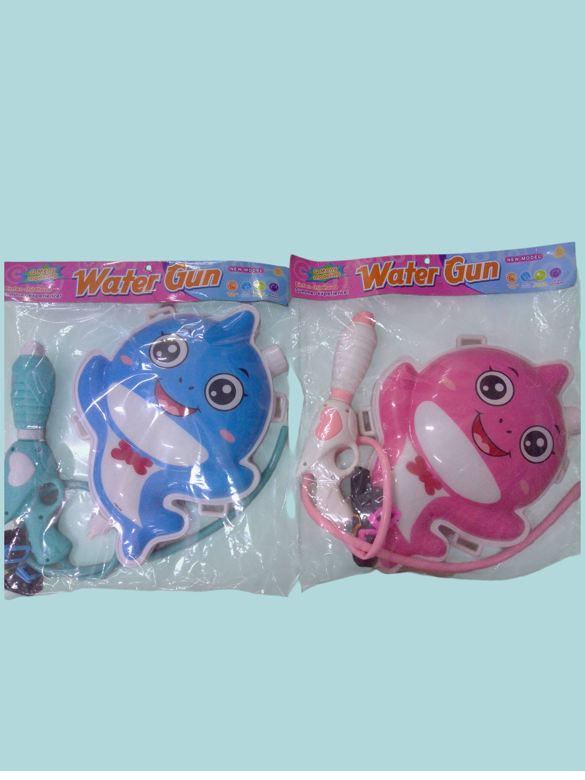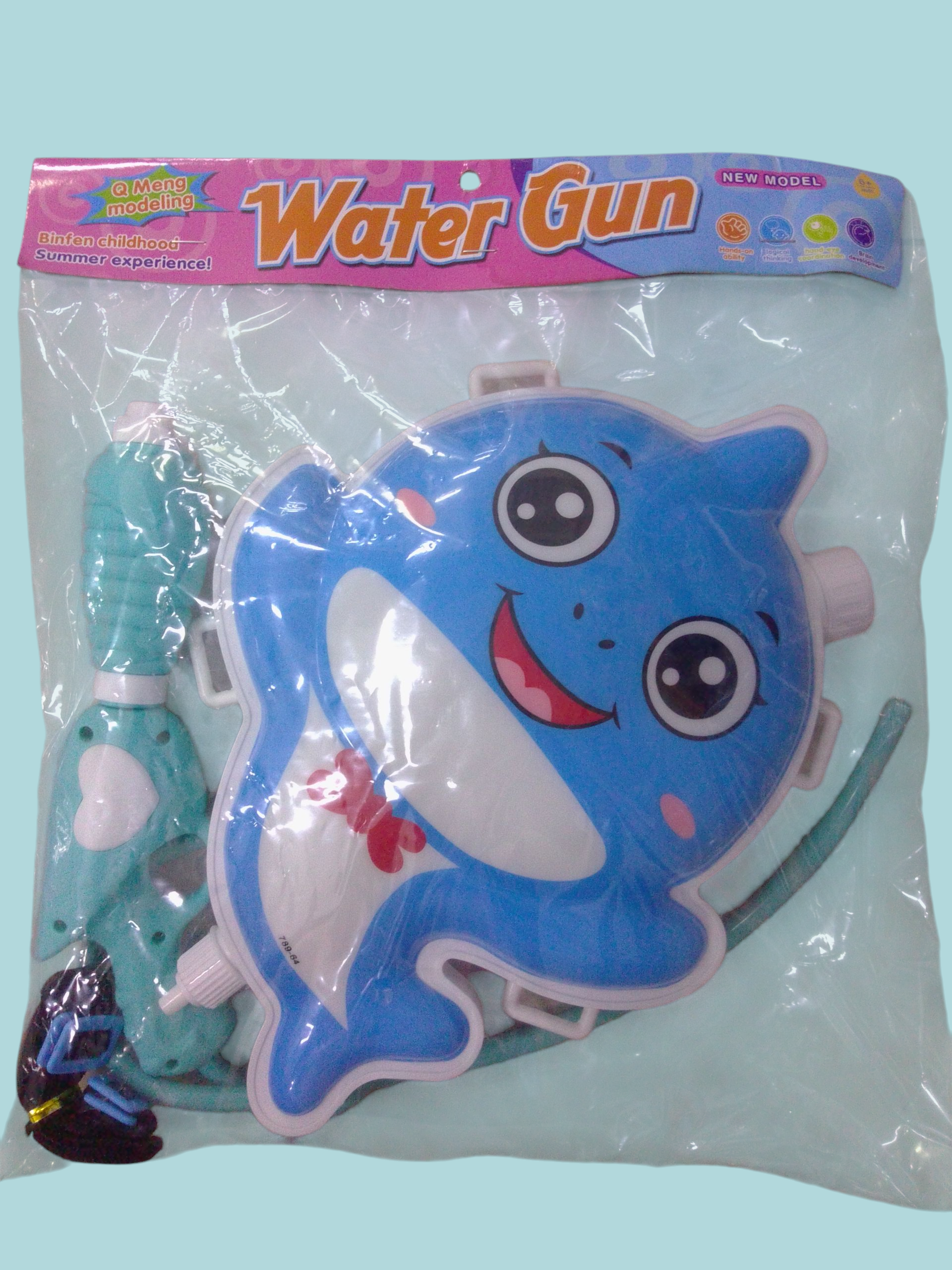 Juguete con mochila para hechar agua en forma tiburón. Colores disponibles.