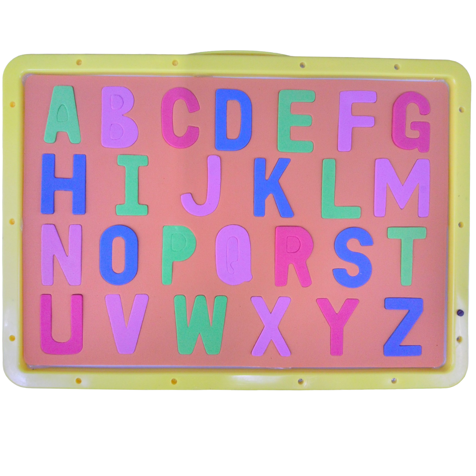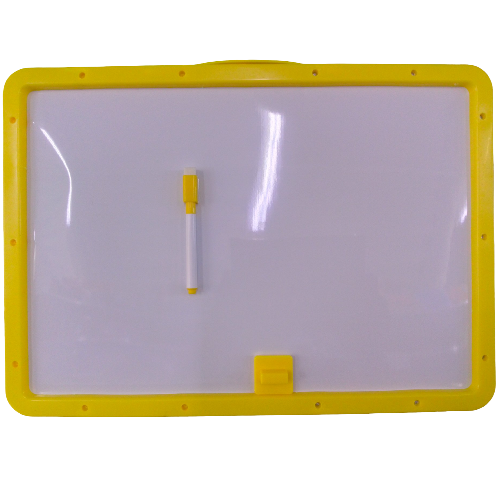 Pizarra blanca acrílica con marcador y borrador y al otro lado tiene el abecedario de colores, mide 32 x 44 cm.