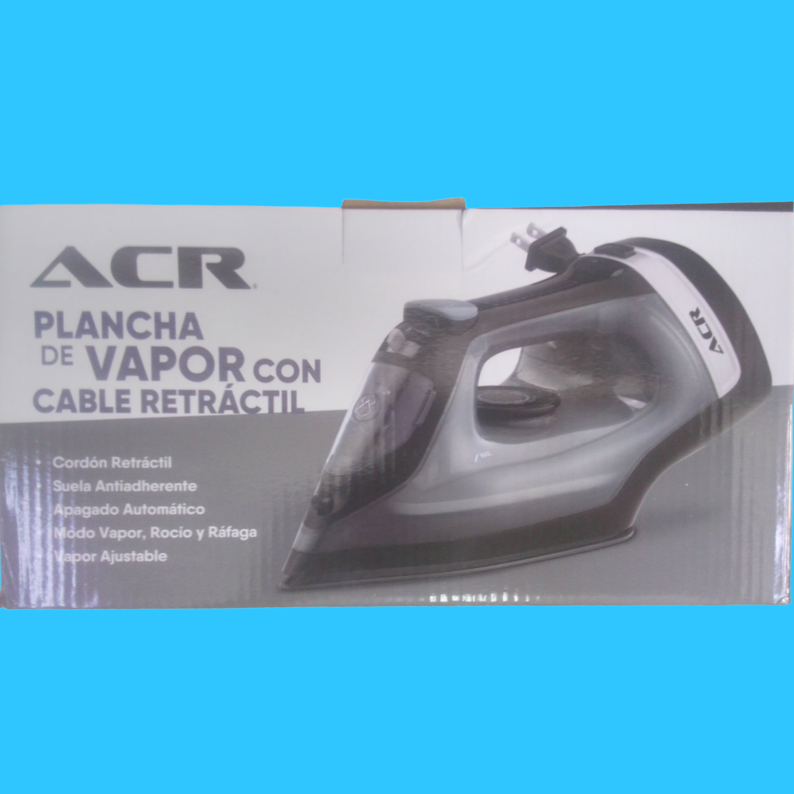 PLANCHA DE VAPOR CON CABLE RETRÁCTIL. COLOR NEGRA. CORDÓN RETRÁCTIL. BASE ANTIADHERENTE, AJUSTE DE CALOR,