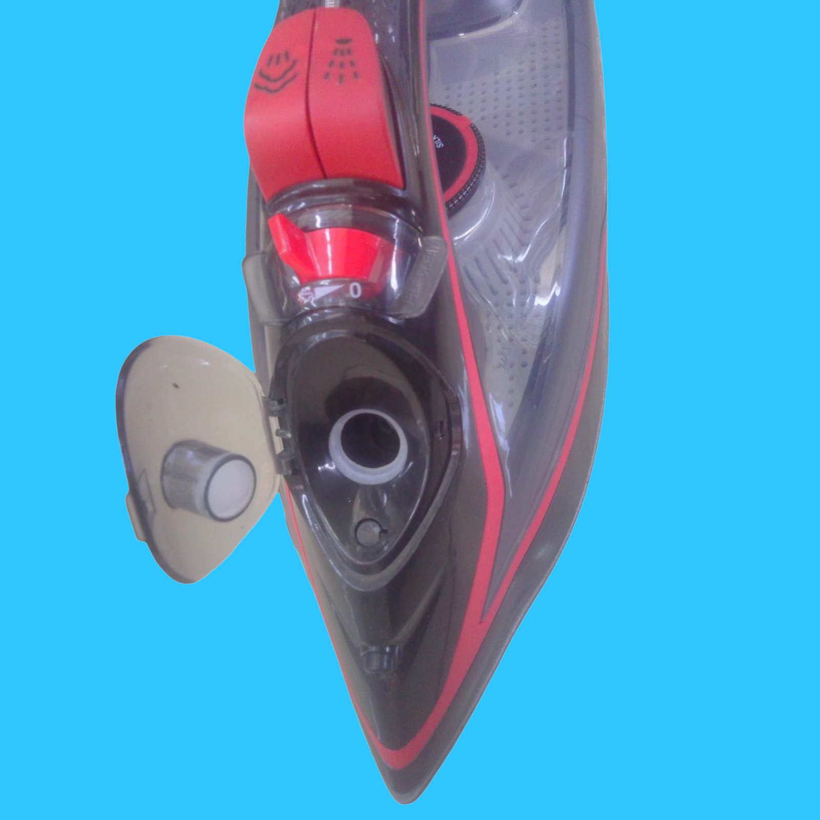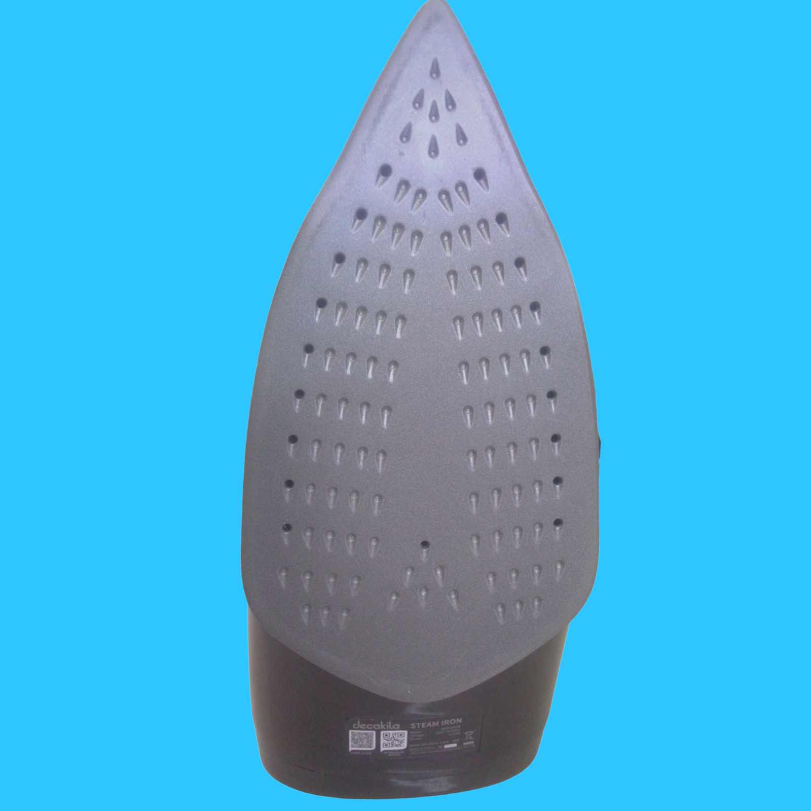 BASE ANTIADHERENTE. COLOR GRIS CON NEGRO. ATOMIZADOR PARA MOJAR LA ROPA AL APLANCHAR. AJUSTE DE TEMPERATURA NO RECALIENTA AL APLANCHAR.