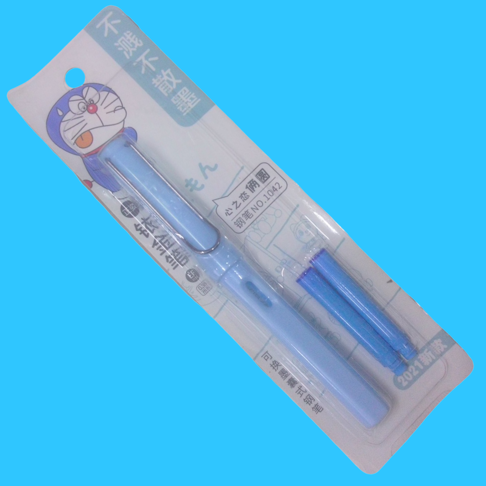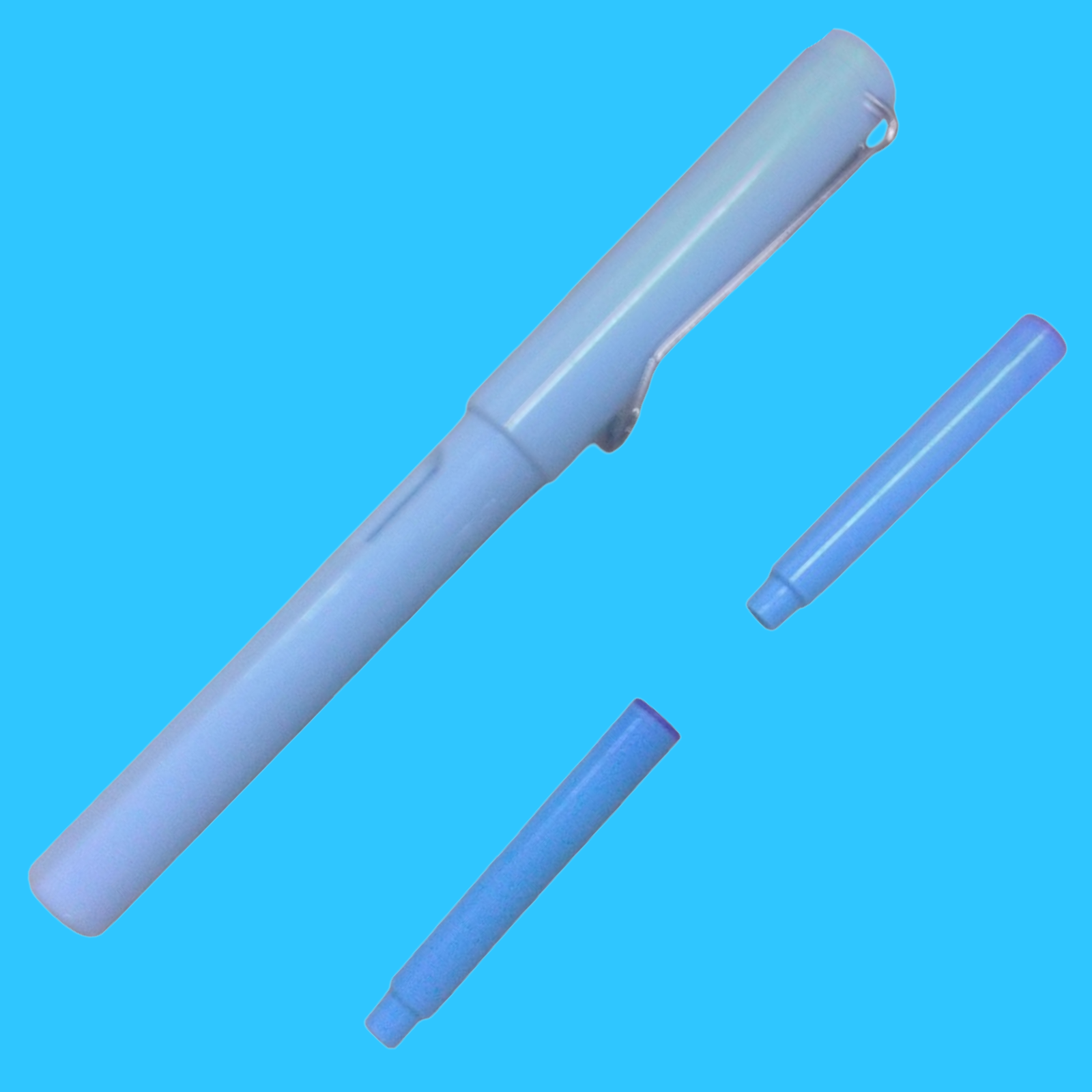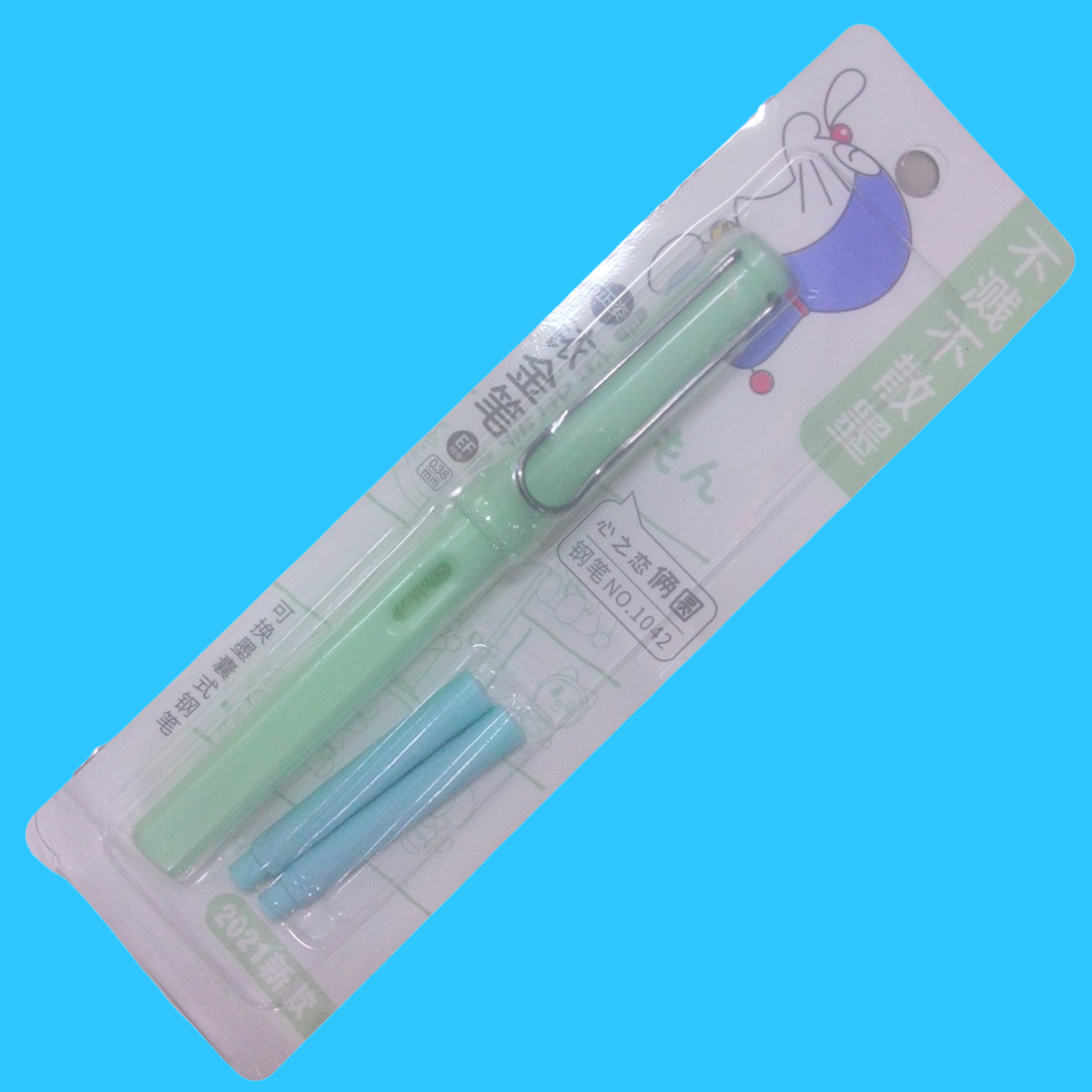 PLUMA DE FUENTE CON REPUESTOS, DE COLORES CELESTE Y VERDE TIERNO.
