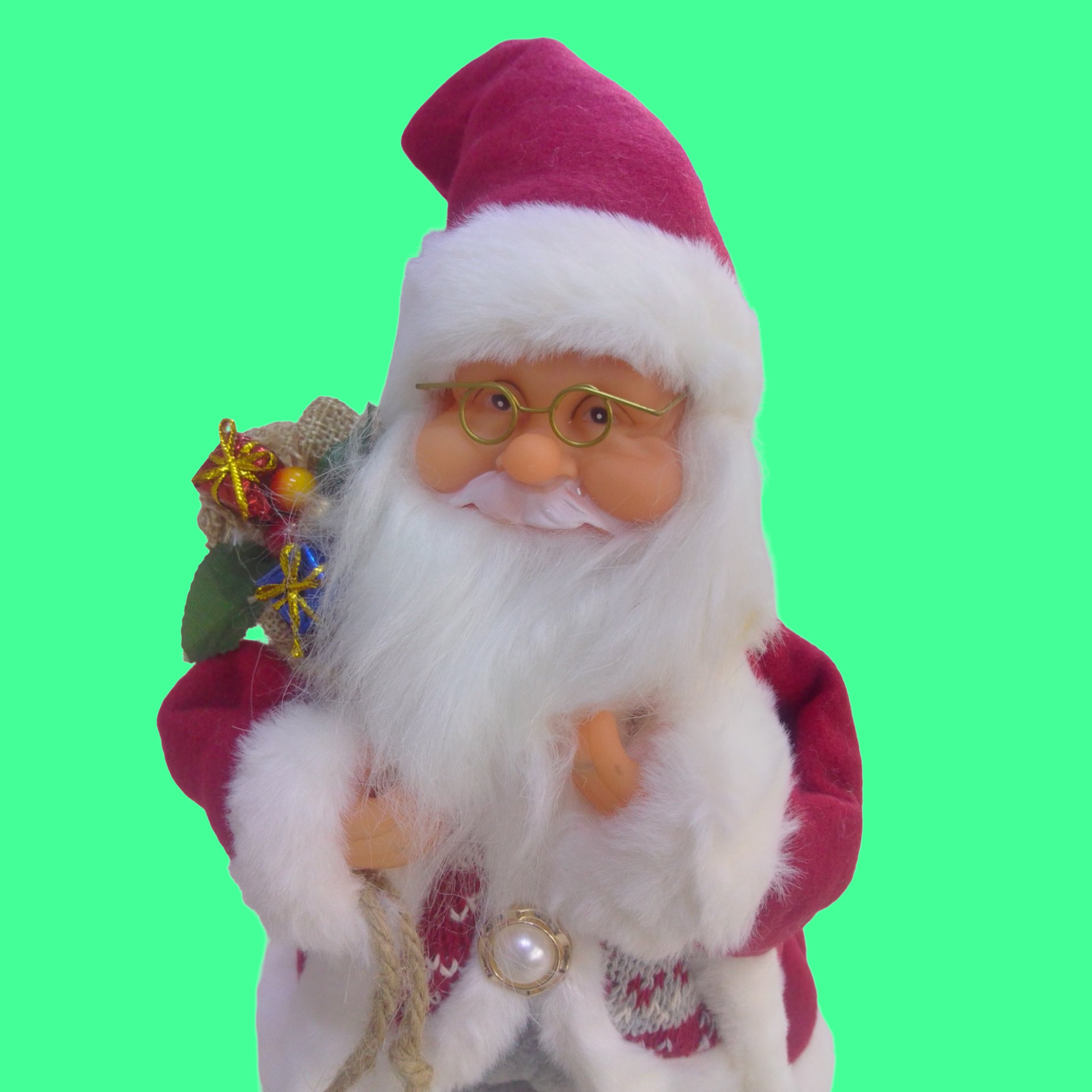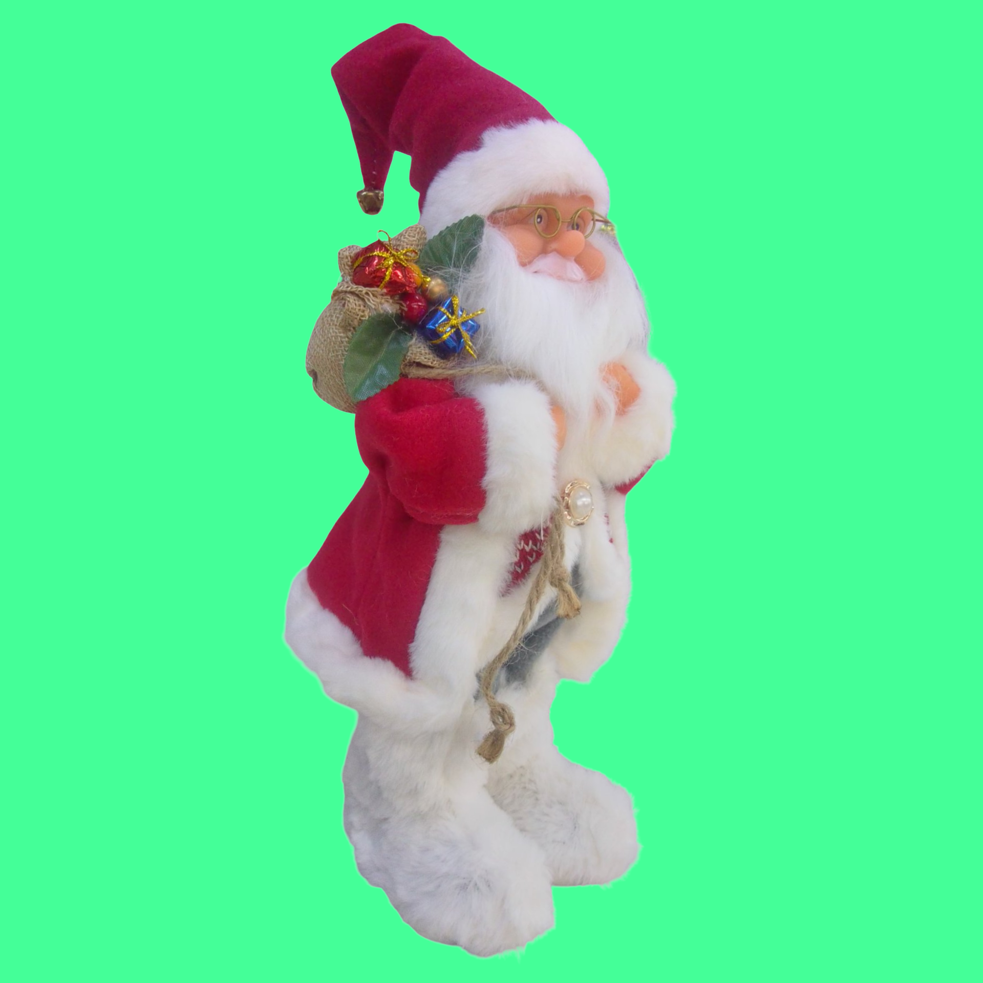 FIGURA PEQUEÑA CON COSTALITO DE REGALOS EN MANO. COLOR ROJO CON BLANCO Y PANTALÓN GRIS. TAMAÑO PEQUEÑO.