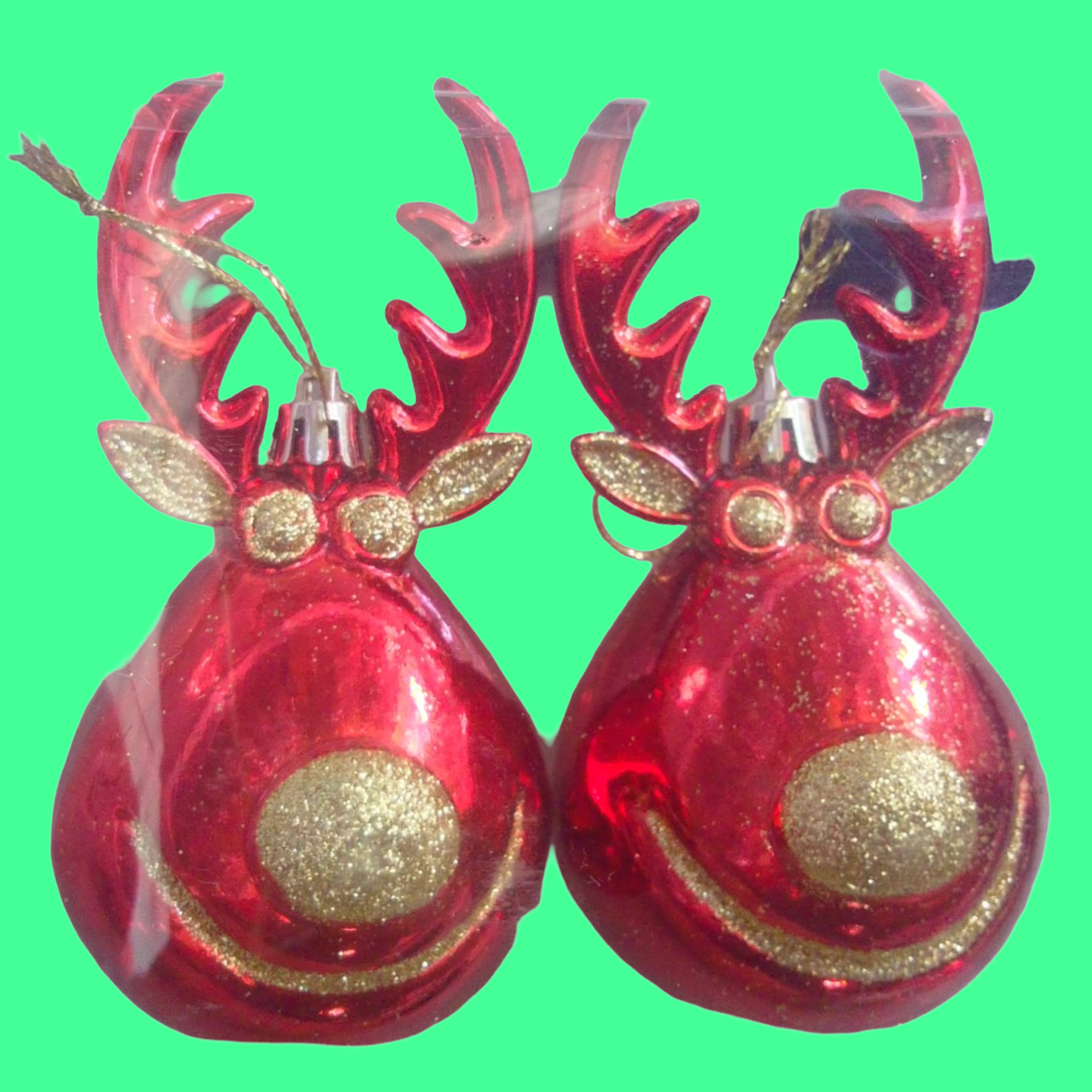 SET DE ADORNOS DECORATIVOS NAVIDEÑOS DE RENOS, COLOR ROJO. PAQUETE DE 2 UDS.