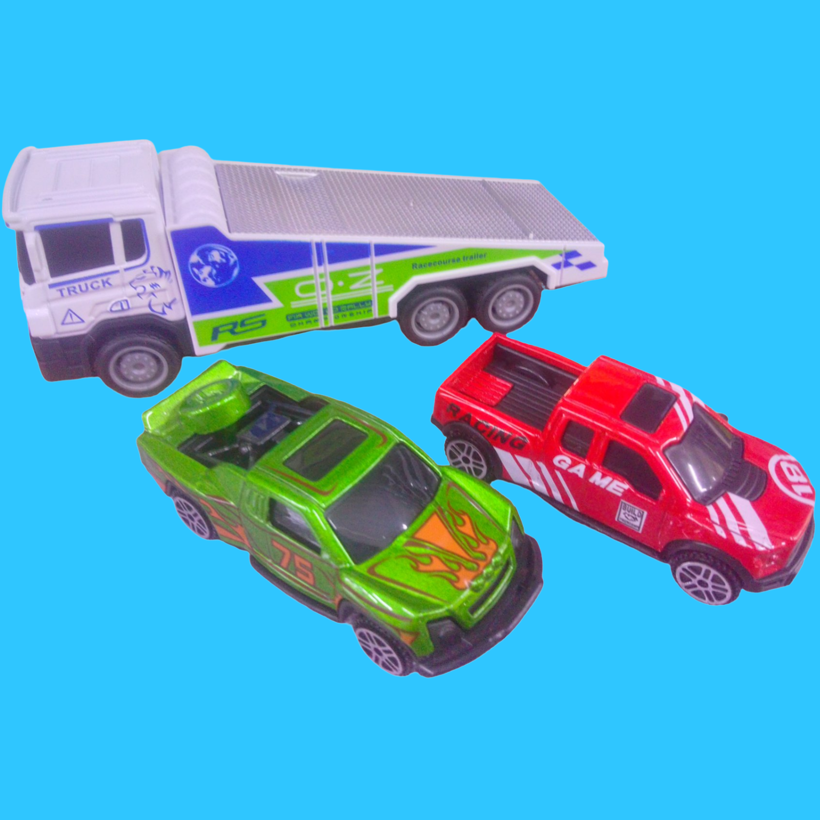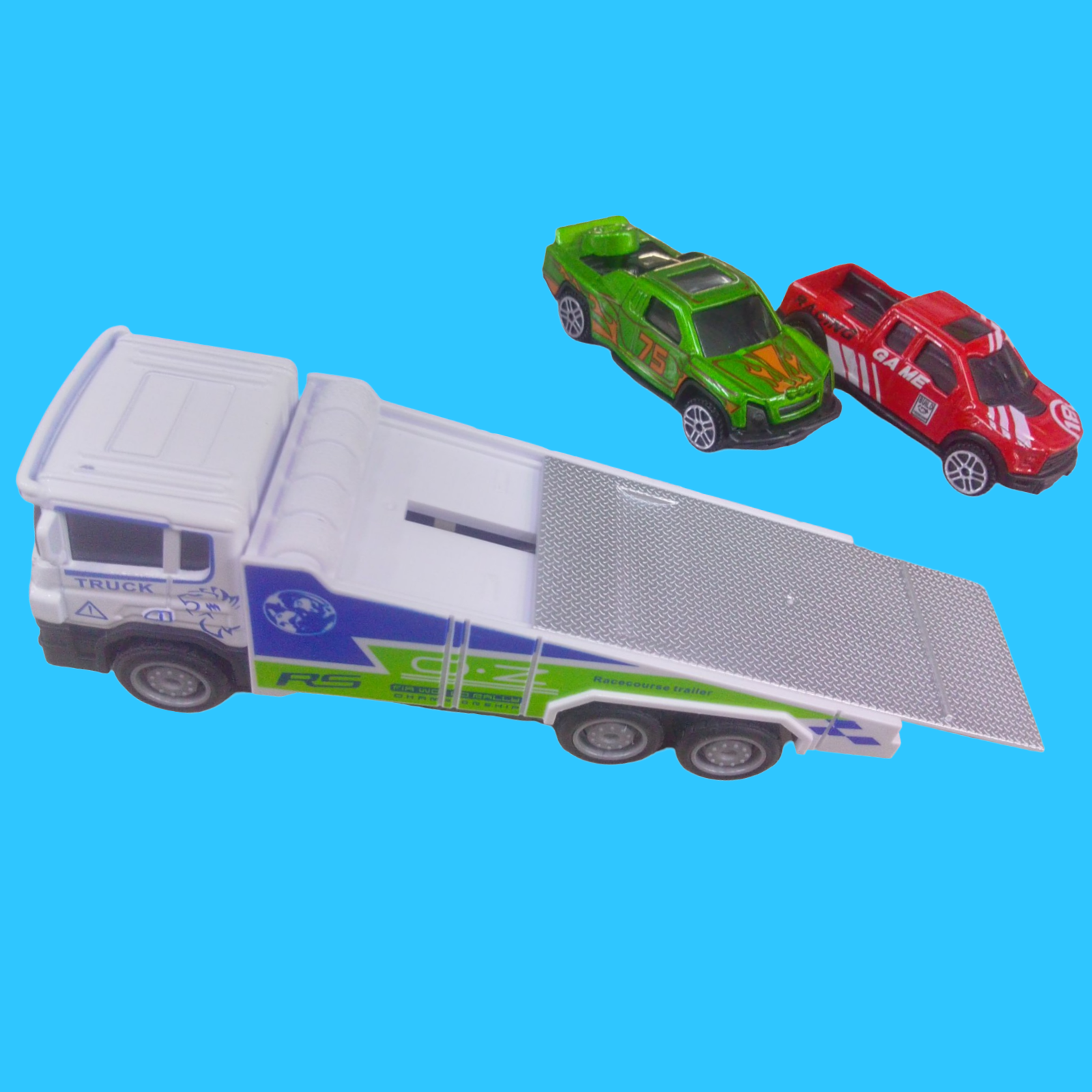 SET DE CARROS. UN REMOLQUE Y 2 CARROS PARA JUGAR A TODO DAR.
