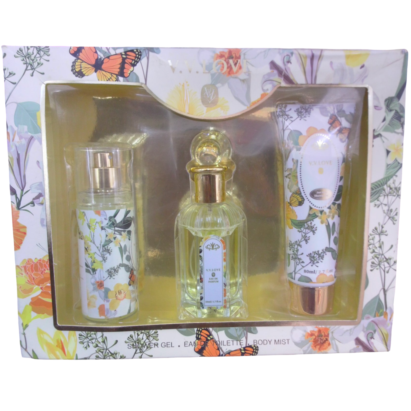 Set de perfumes para damas, para después del baño loción, gel y perfumes. Artículos en promoción, al llevar 3 paquetes descuento del 40% del mismo código, promoción válida hasta el 14 de febrero.