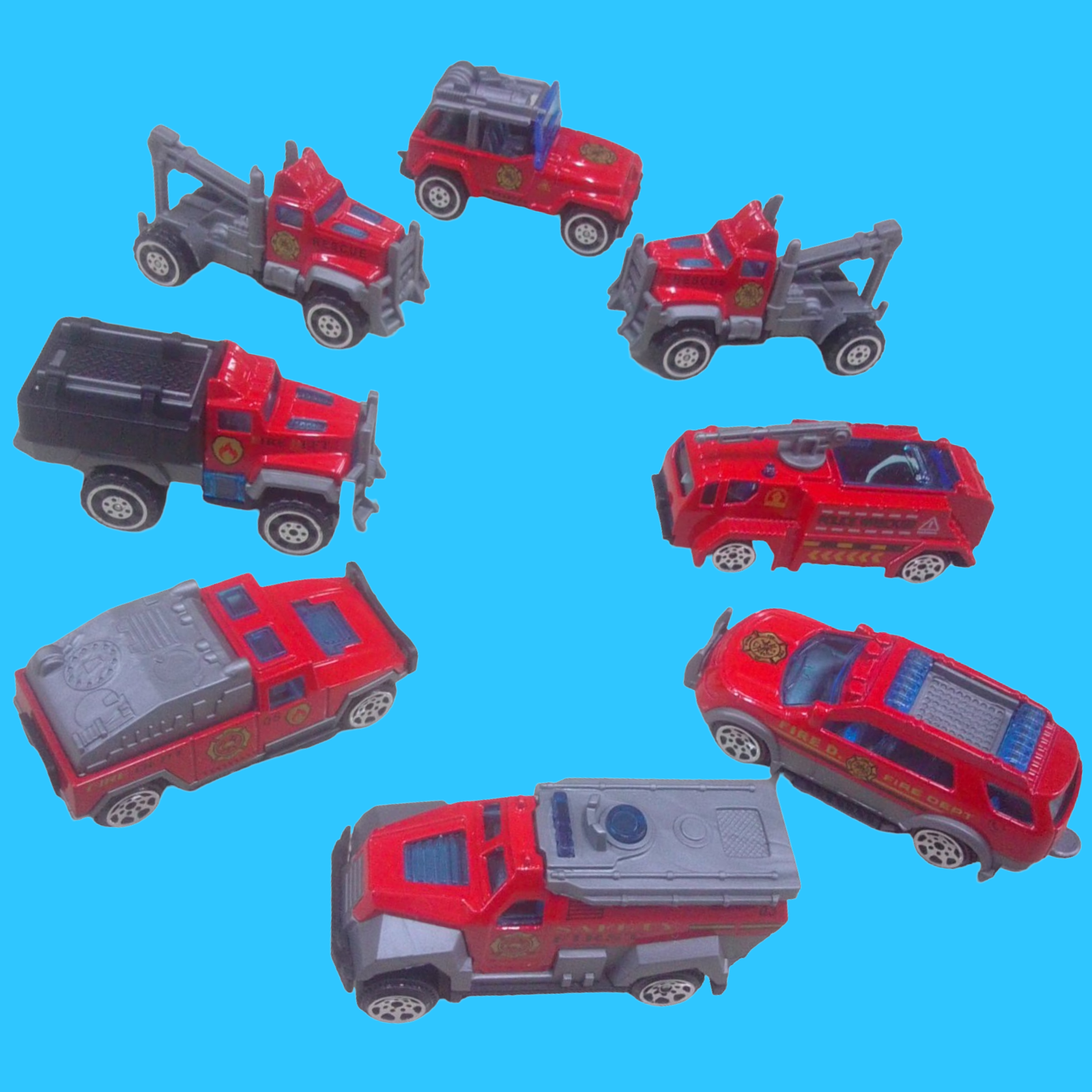 SET DE CARROS DE RESCATE. DANNY HOME. CONTIENE CAMION CON ESCALERAS, PATRULLAS , PATRULLAS TODO TERRENO, GRUA, PARAMÉDICOS Y MÁS. CONTIENE 15 PCS.