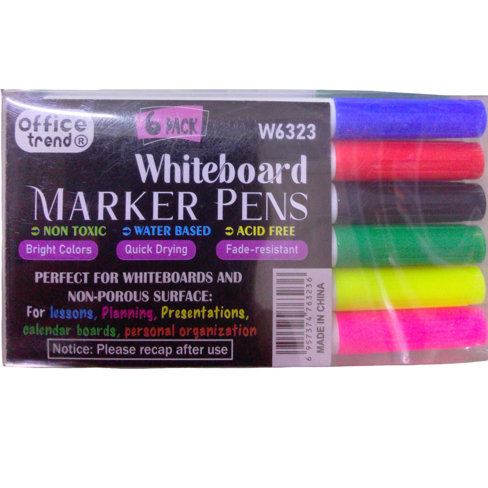 MARCADOR PARA PIZARRAS. SET DE 6 COLORES. AZÚL, NEGRO, ROJO, ROSADO, VERDES CLARO Y OSCURO.