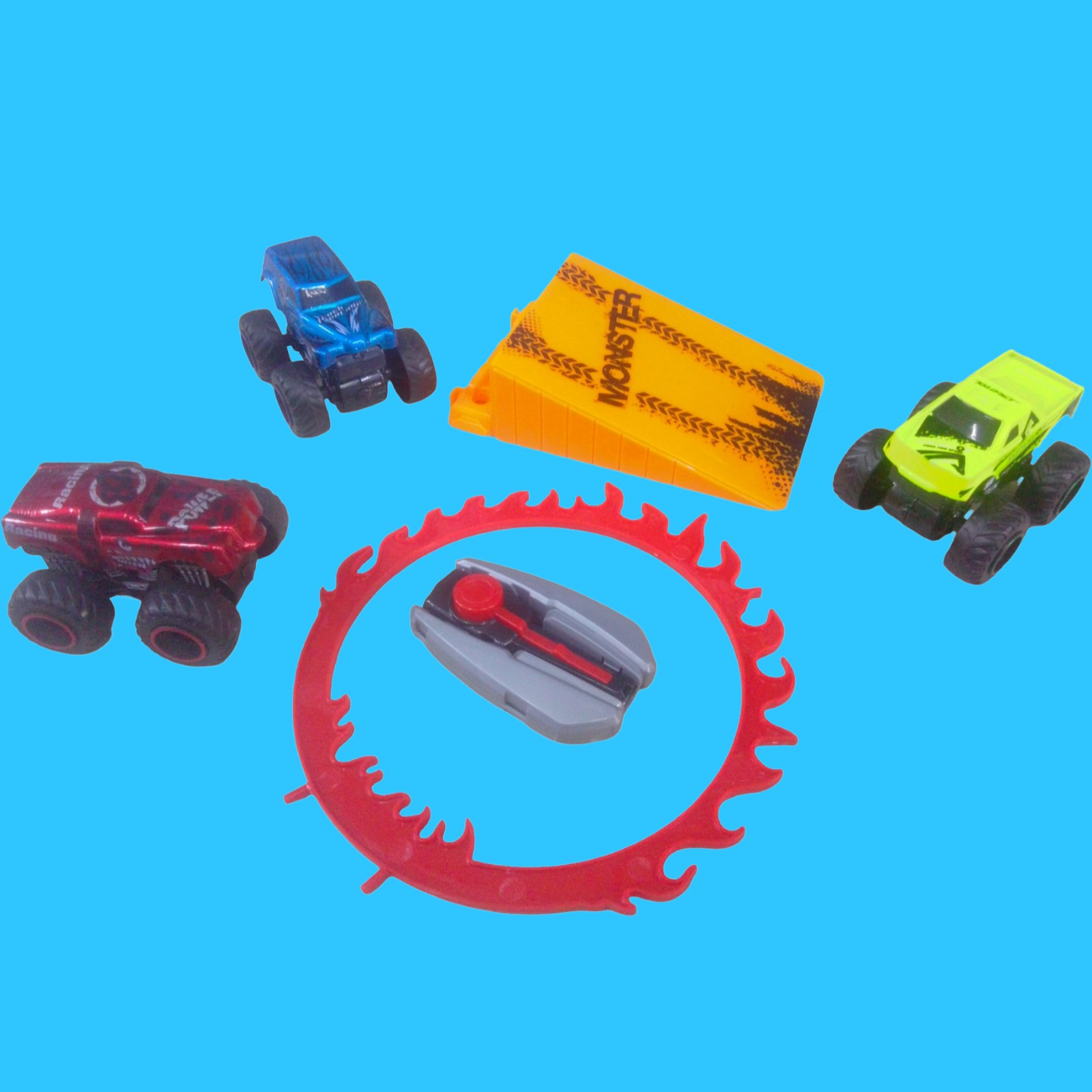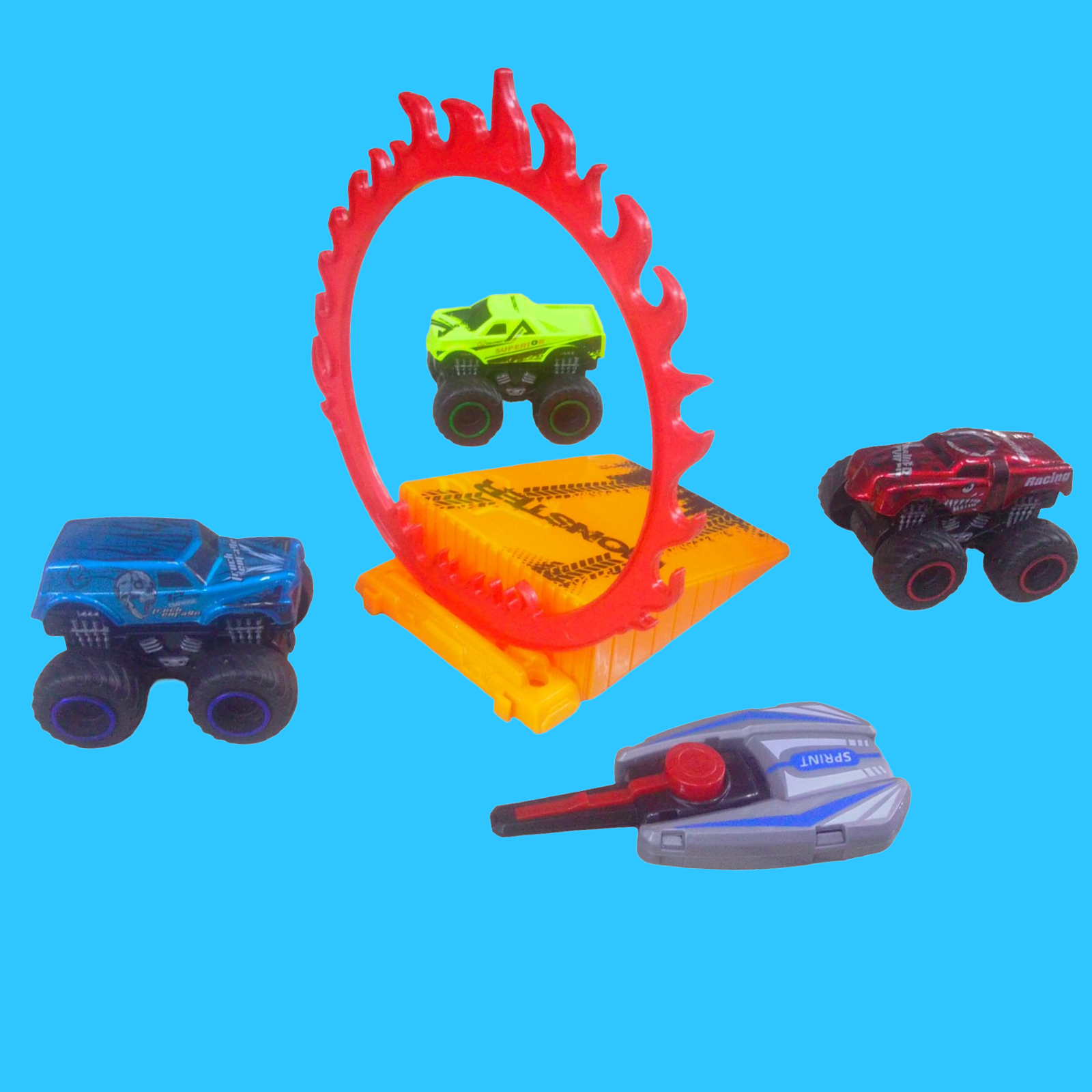 DIVIÉRTETE Y JUEGA CON TUS MONSTER TRUCK. QUE PASEN POR LA RAMPA CON LLAMAS ARDIENTES SIN QUEMARSE. IMPULSADOS POR LANZADOR.