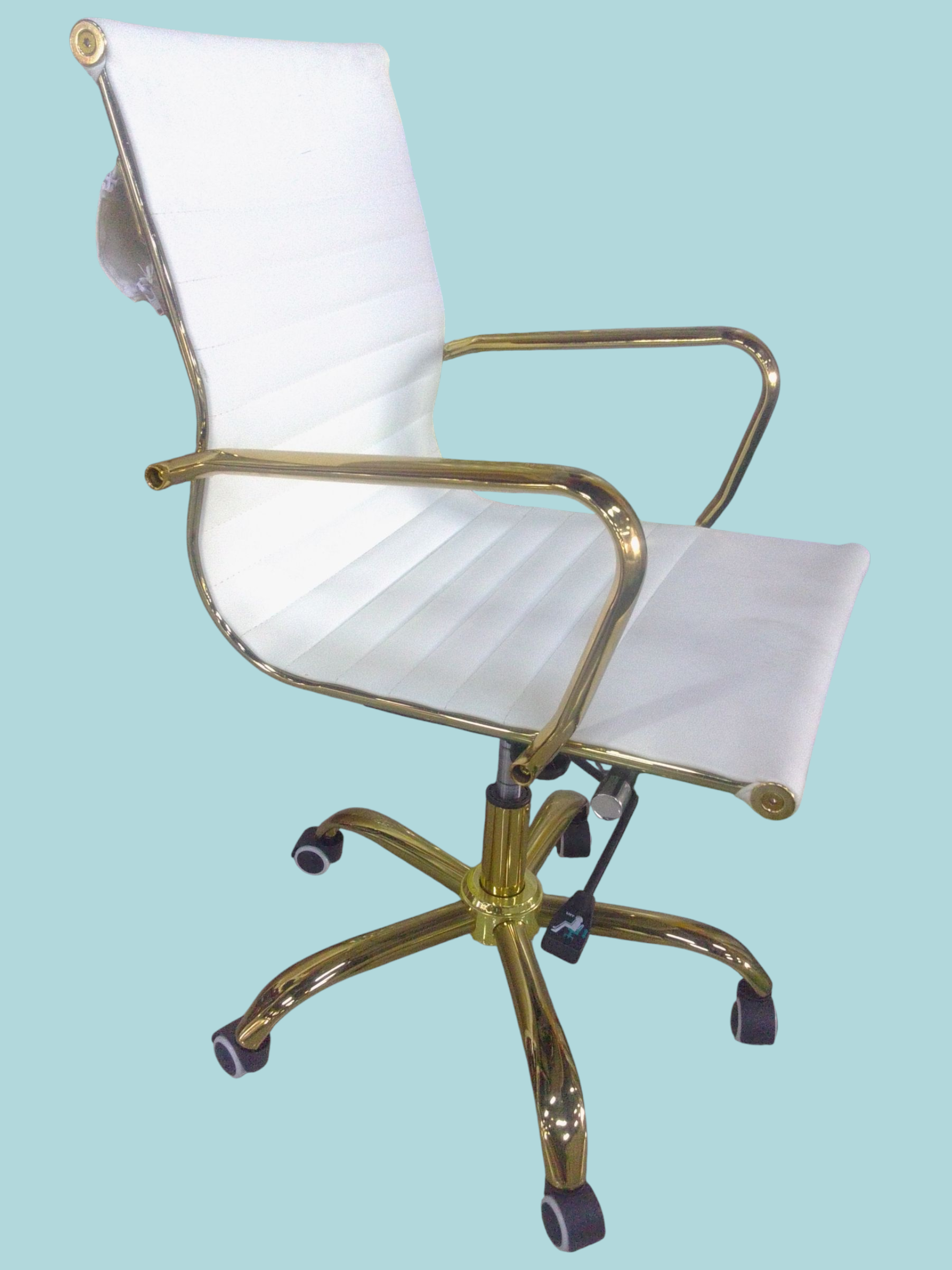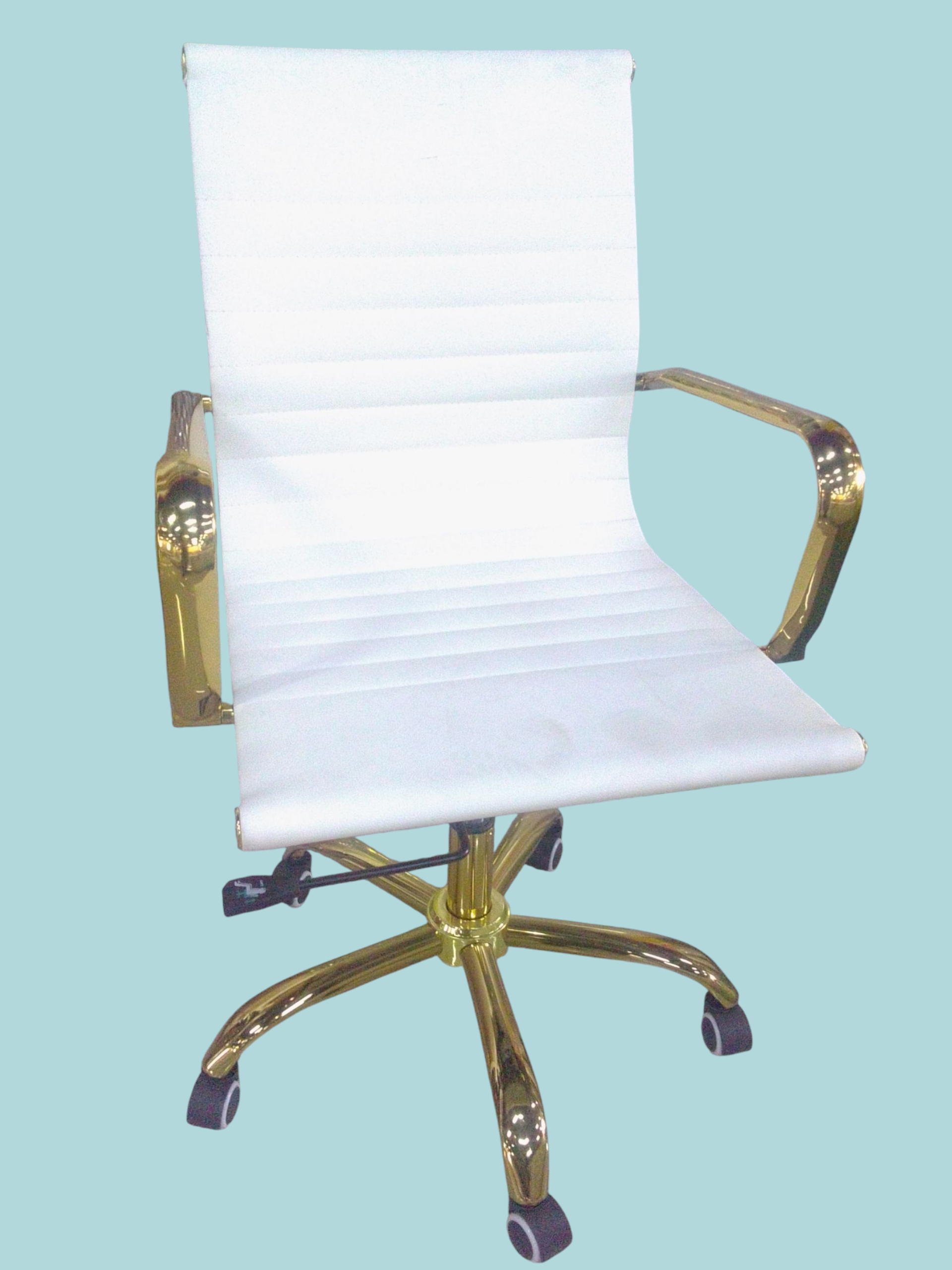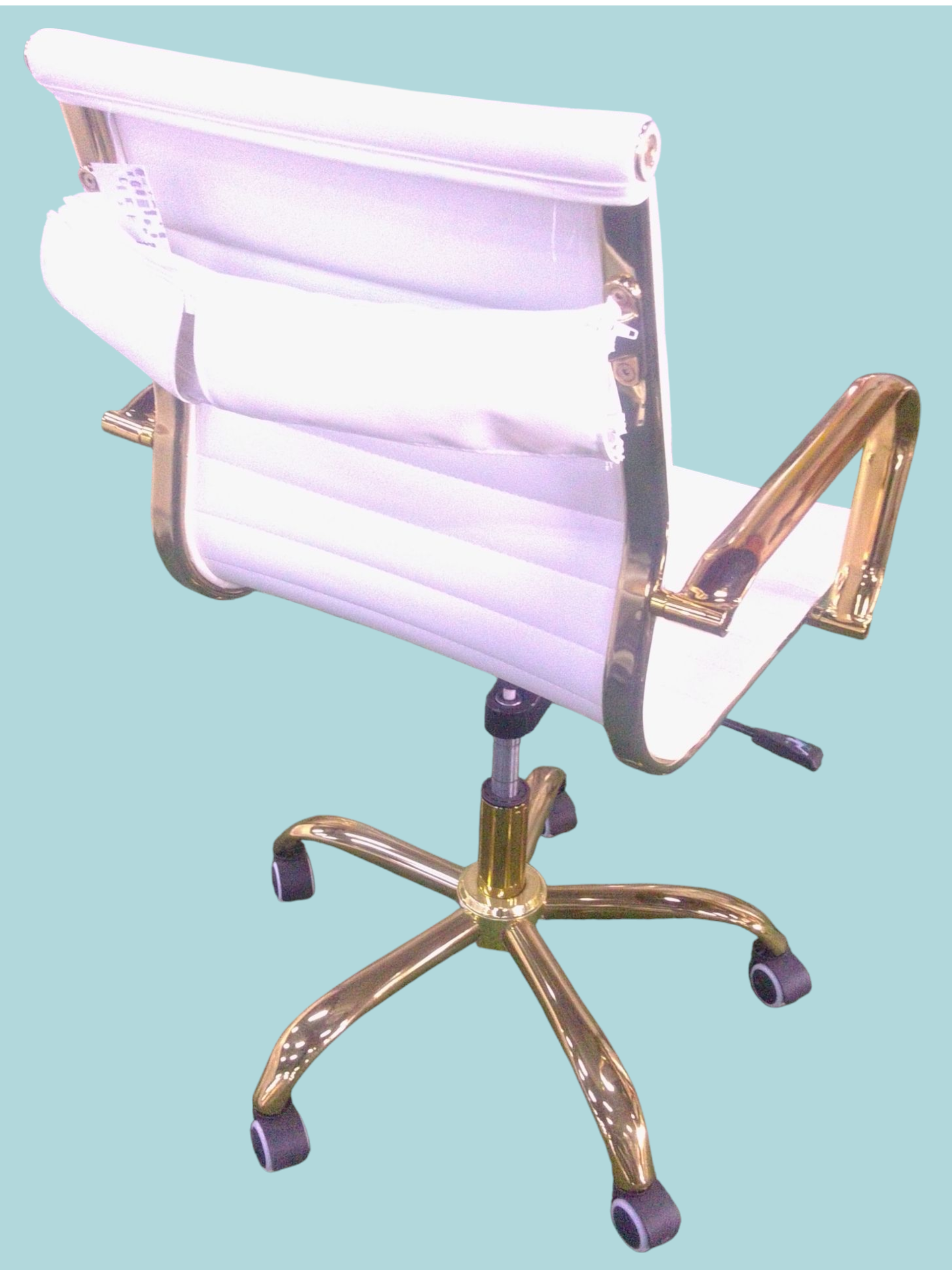 Color blanca. Cómoda asiento y respaldar suave. Base y posa manos de metal dorado y ajustable a su comodidad.
