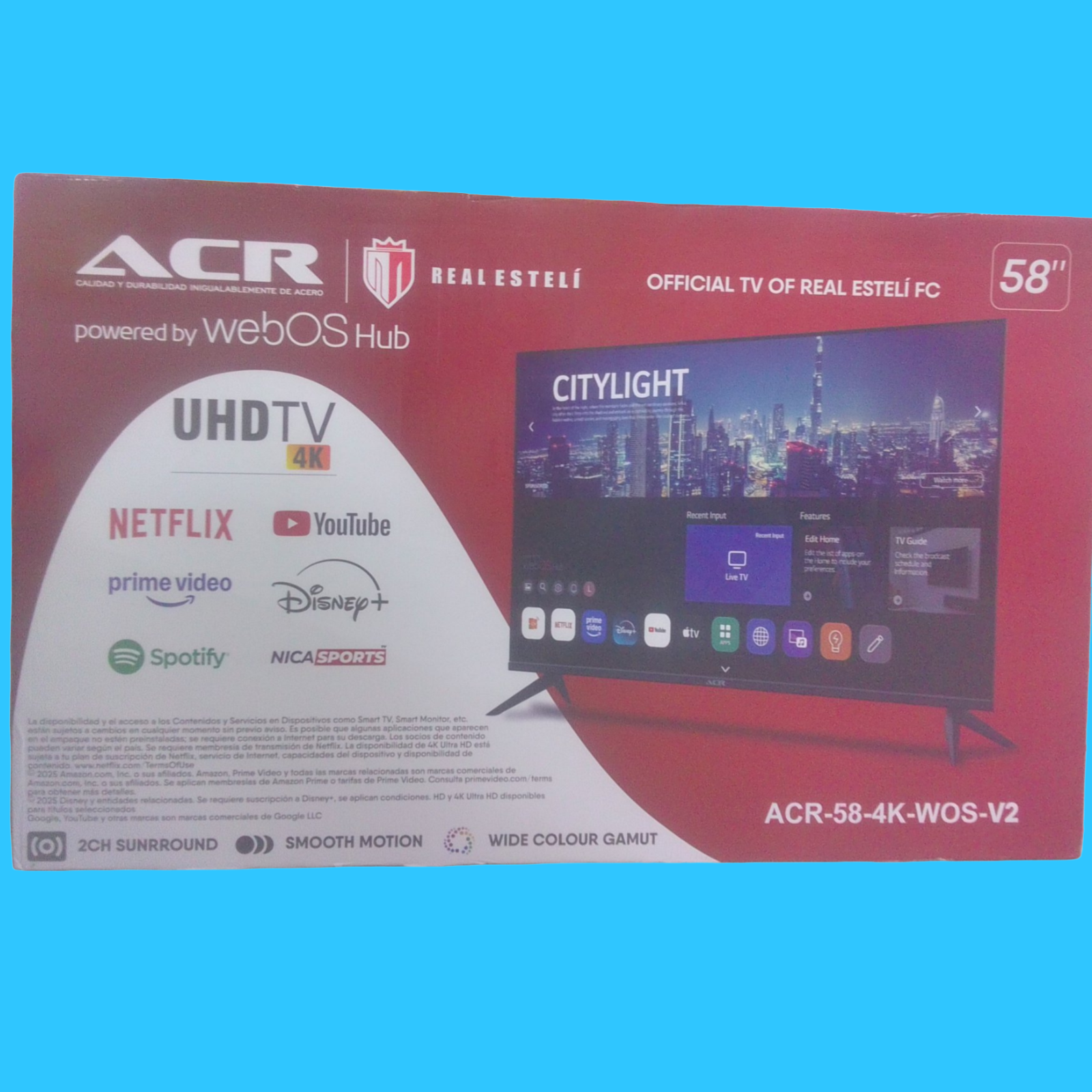 SMART TV. DE 58 PULGADAS. SONIDO ENVOLVENTE, MOVIMIENTOS SUAVE. ALTA DEFINICIÓN DE COLORES. CANALES PRIVADOS ANEXADOS. UHD 4K.