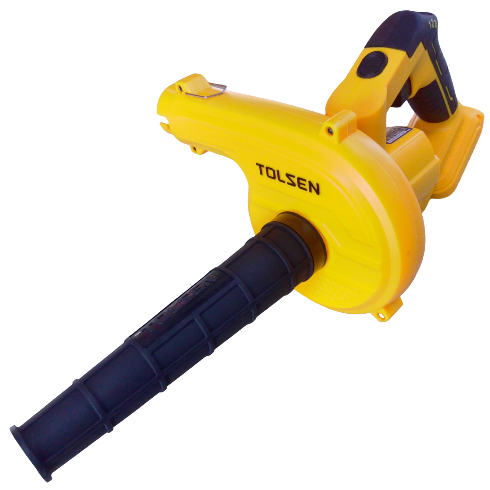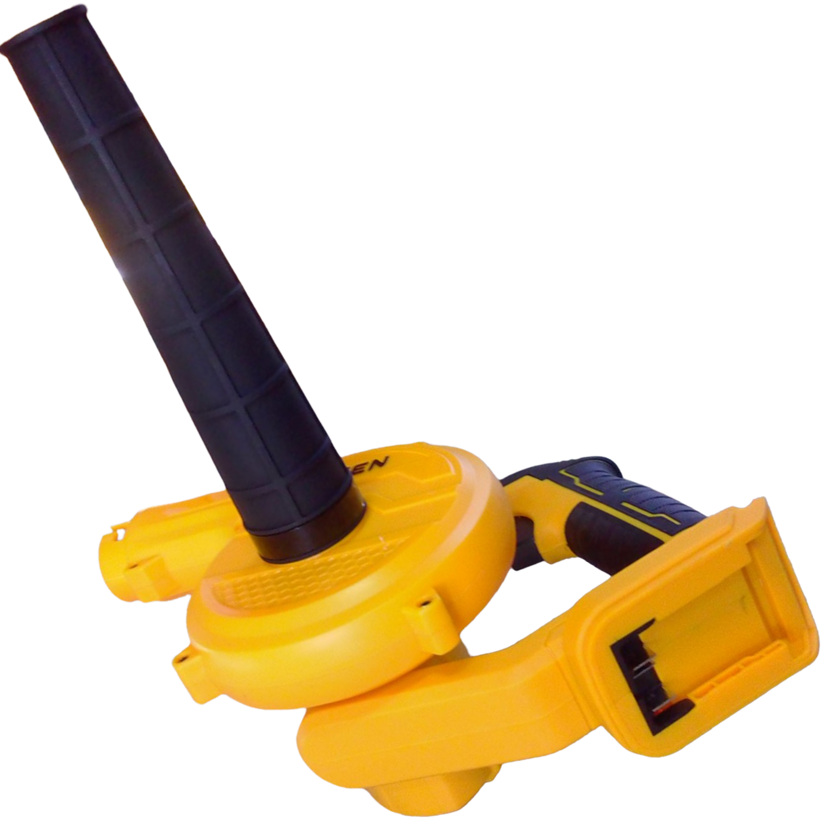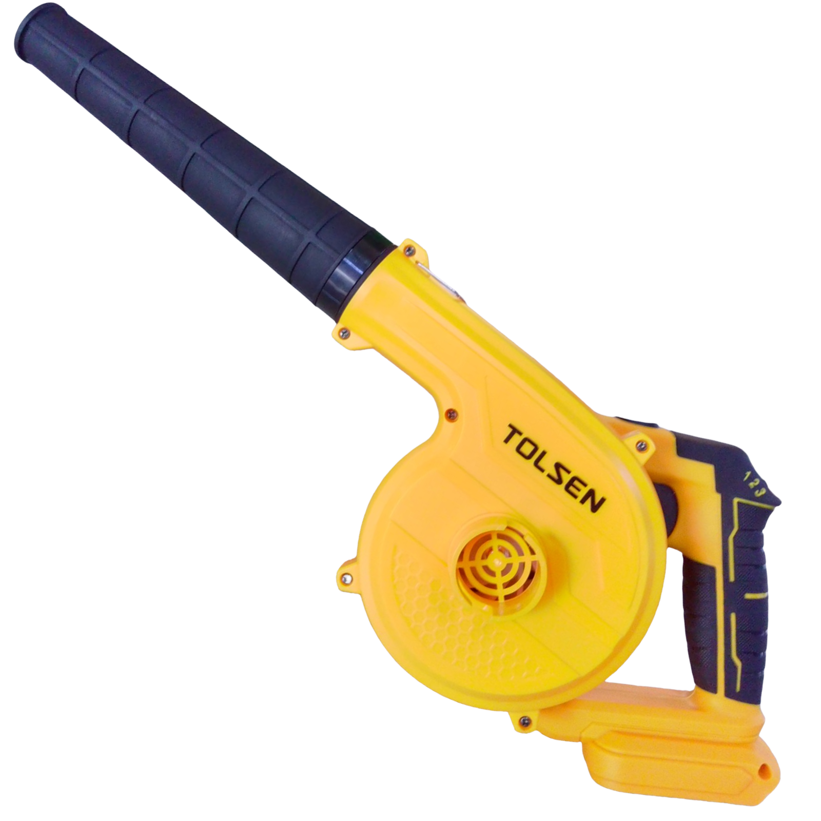 Sopladora inalámbrica, tiene 2 posiciónes de soplado, 3 velocidades, botón de encendido y apagado, compartimiento para la batería en la base de la empuñadura