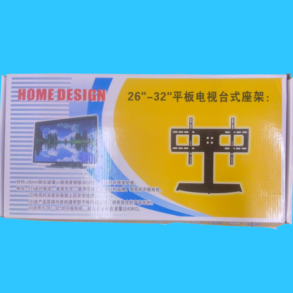SOPORTE DE MESA PARA TV LCD. SOPORTA PESO DE 40 KG. RESPALDAR DE VIDRIO TEMPLADO Y ACCESORIOS PINTADO CON PINTURA ANTIOXIDANTES DE COLOR NEGRO.