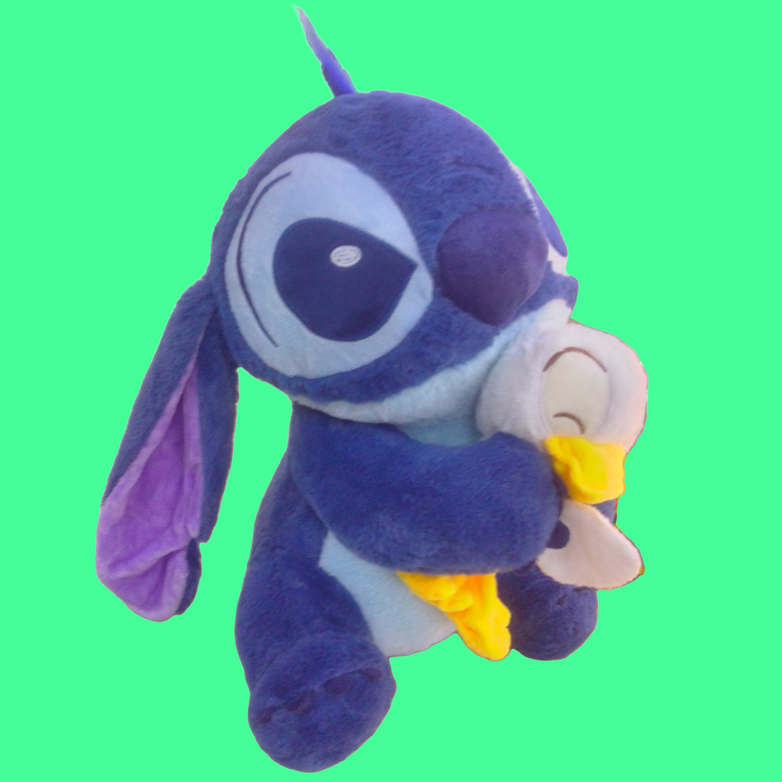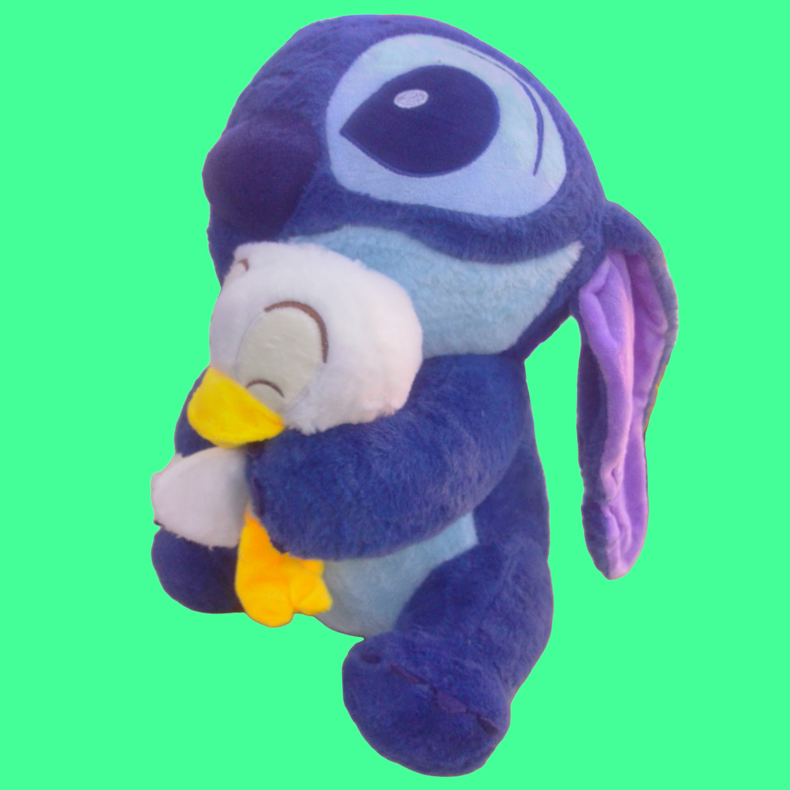 STICH DE COLOR AZUL CON MASCOTA PATO. MIDE 36 CM.