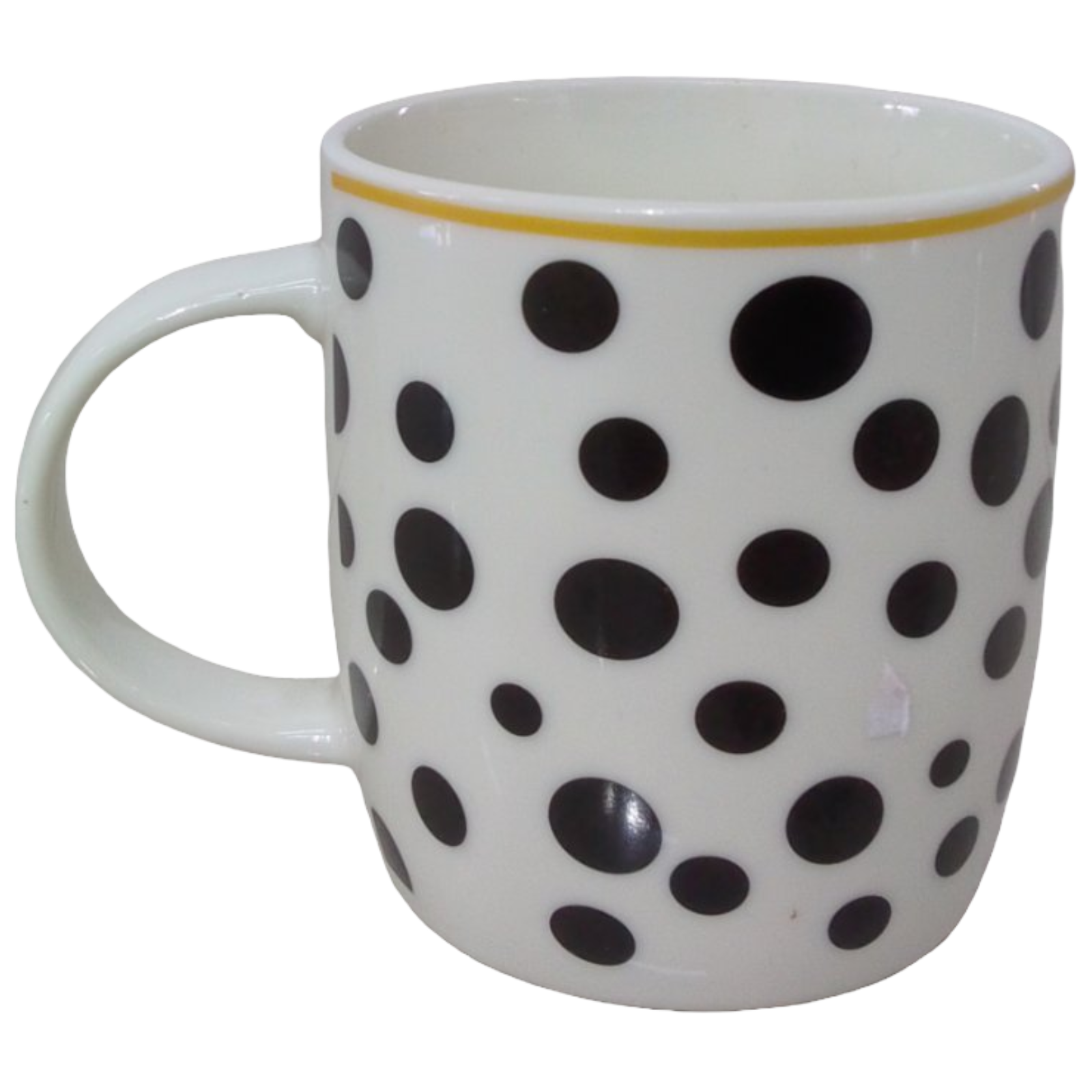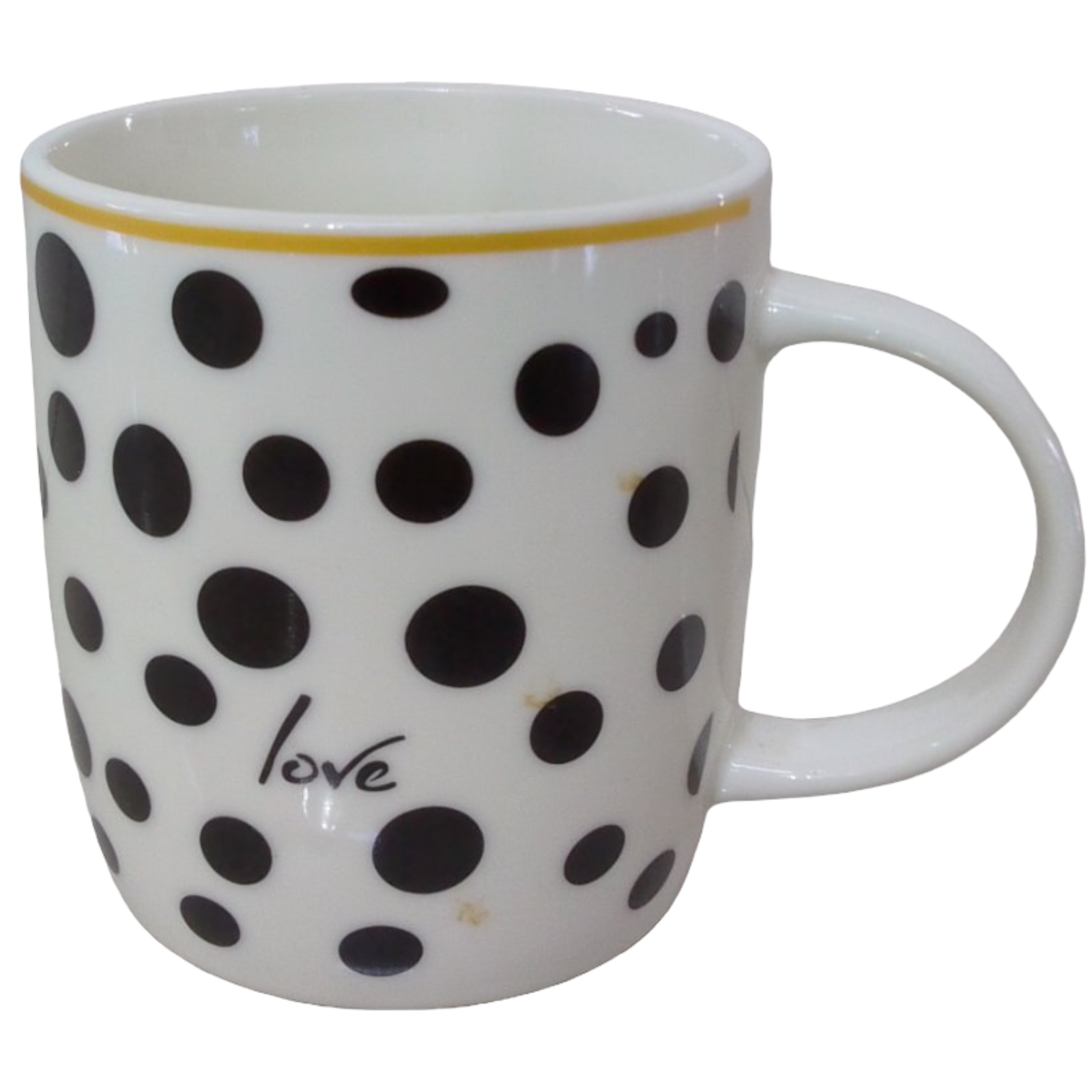Taza de porcelana para tomar café, color blanco con círculos negros con una frase LOVE, regalo especial para dar a esa persona especial, para el día del amor y la amistad.