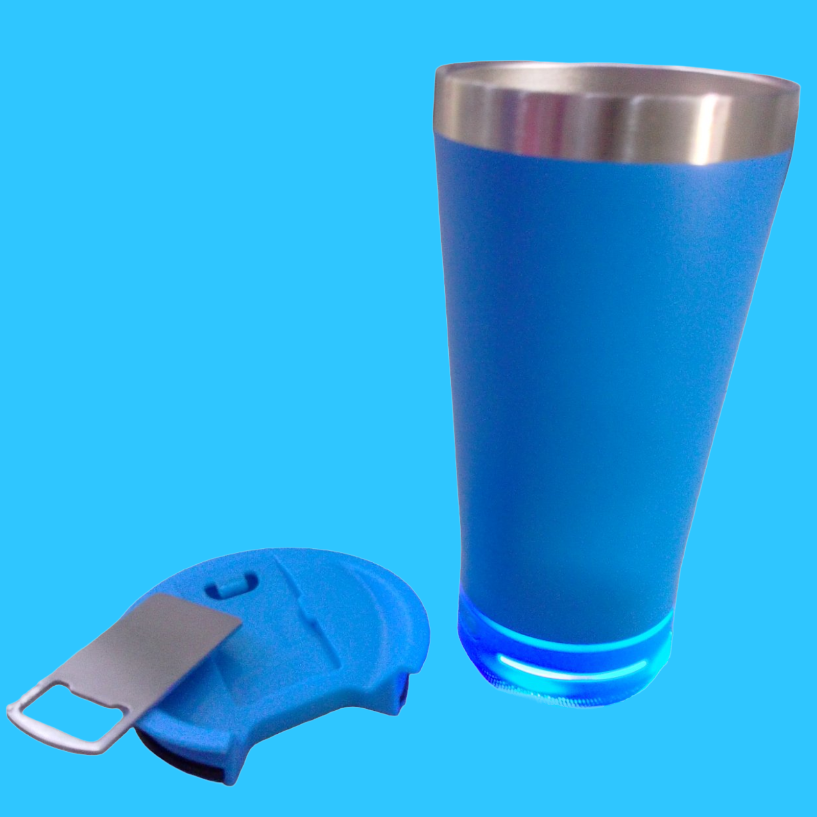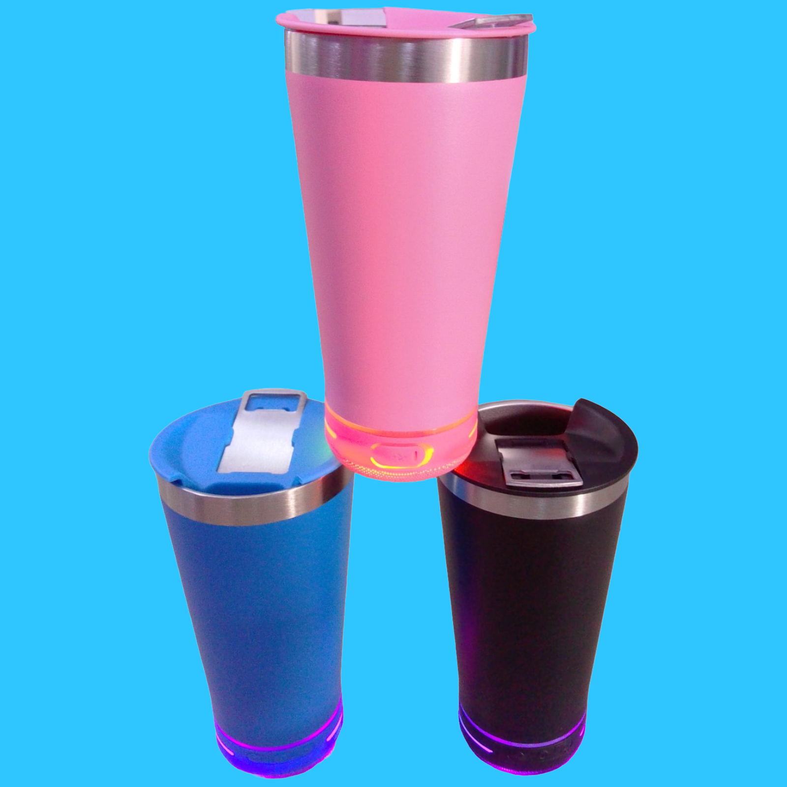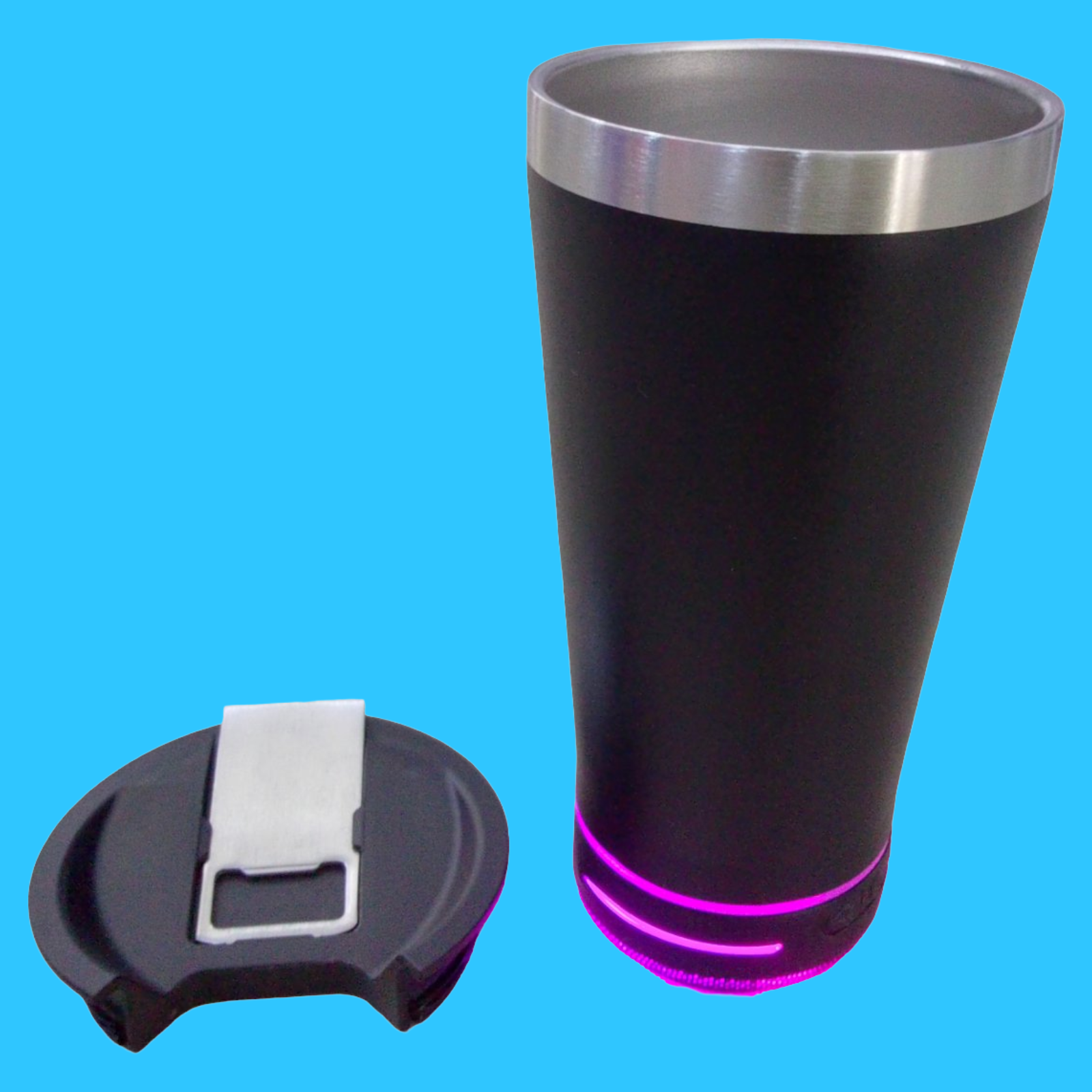 TERMO CERVECERO. PARLANTE MUSICAL, CON BLUETOOTH TIENE LUCES LED A COLORES, TIENE ENTRADA PARA MICRO SD. ENTRADA DE CARGA CON SU CABLE. CAP DE 473 ML.