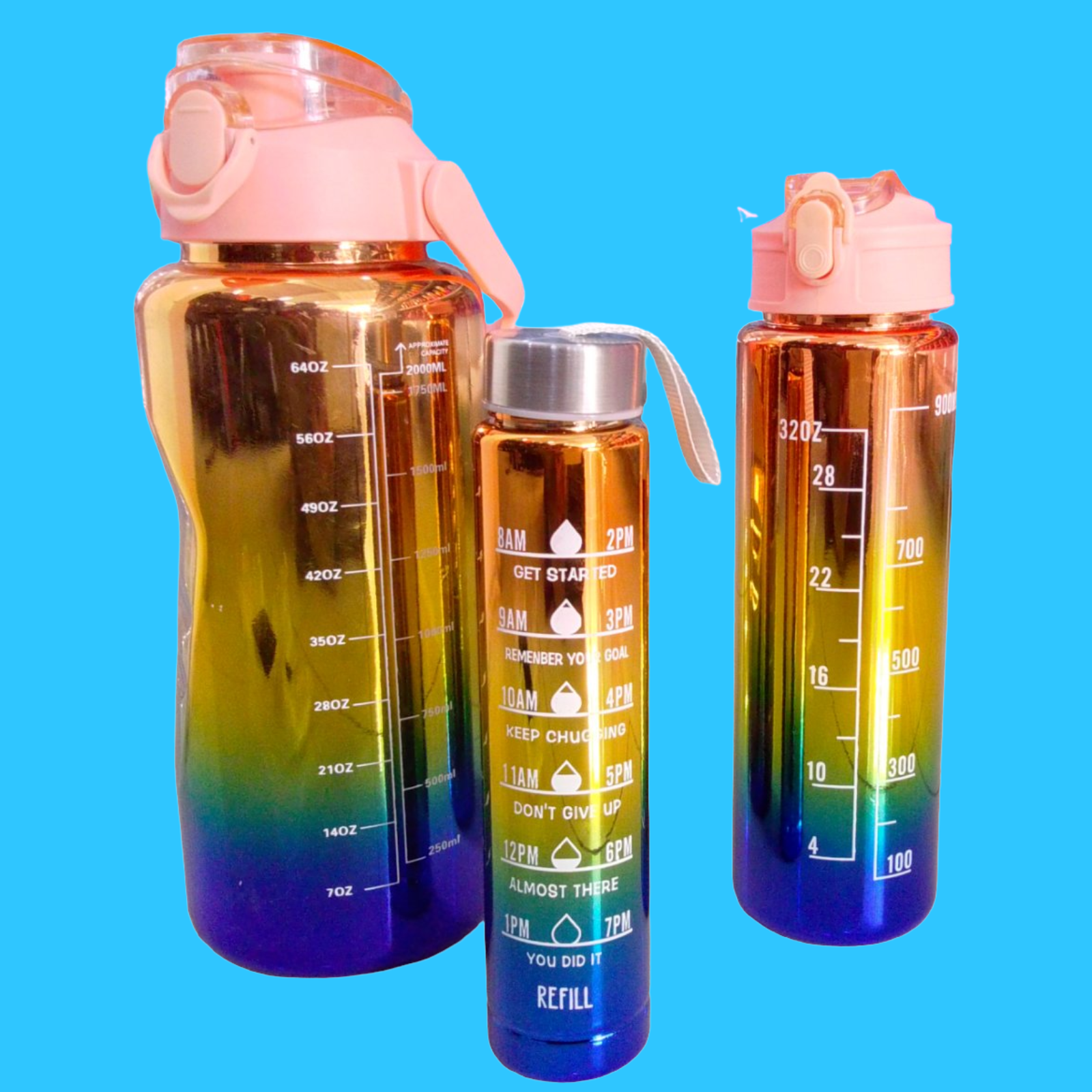 JUEGO DE TERMOS PARA BEBIDAS. LLEVAR AGUA 3 TAMAÑOS DIFERENTES. TERMO GRANDE CAP DE 2 LTS. TERMO MEDIANO 1 LT Y EL PEQUEÑO 750. ML.