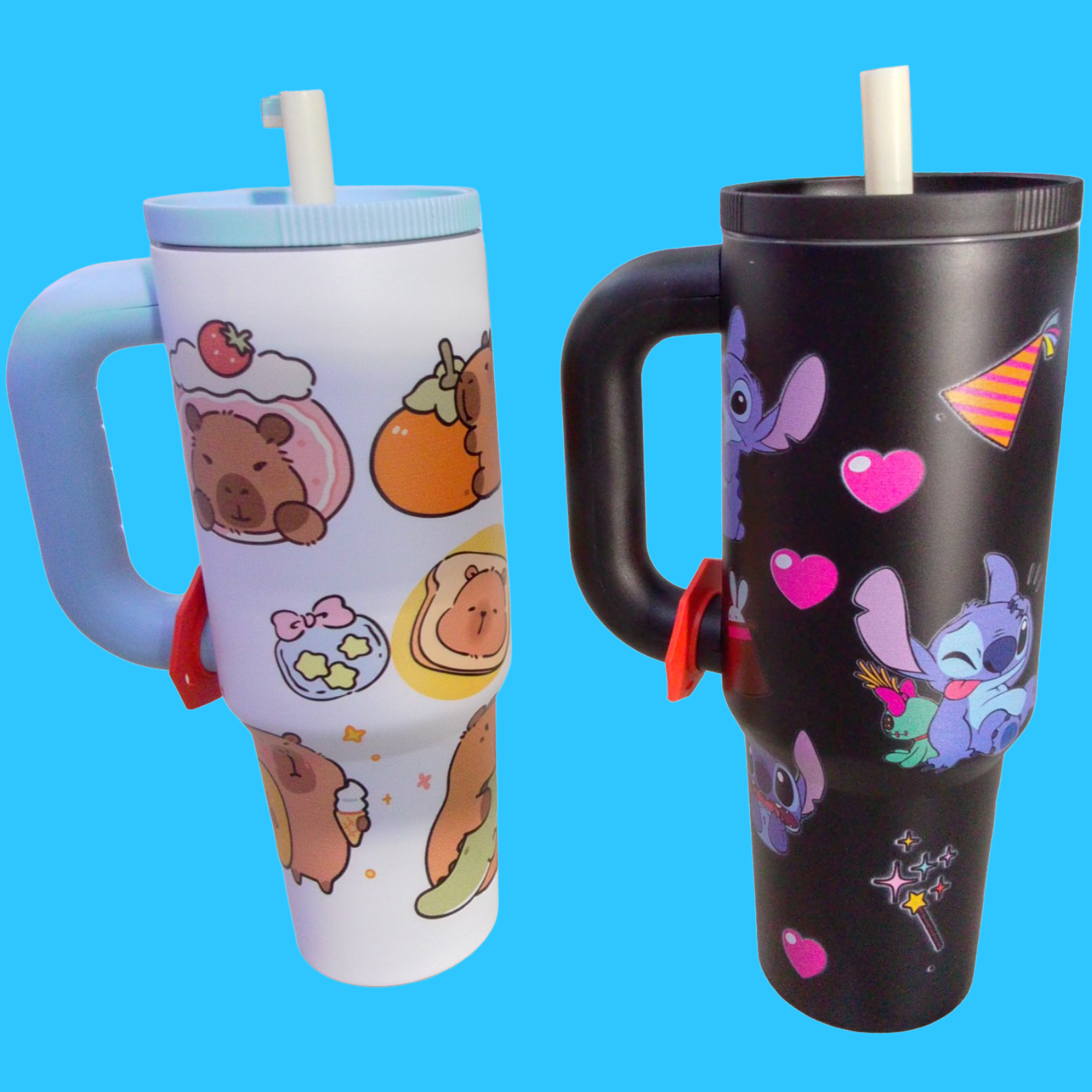 BOTELLA PARA AGUA. CAP DE 1200 ML. FIGURAS DIVERTIDAS EN LAS BOTELLAS CON PAJILLAS METÁLICAS Y TAPAS PARA AMBAS BOQUILLAS.