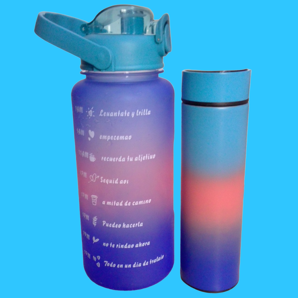 TERMOS PARA BEBIDAS CONTIENE 2 BOTELLAS UNO PARA BEBIDAS FRIAS Y OTRO PARA BEBIDAS CALIENTE. GRANDE CAP DE 2 LTS. Y EL OTRO TERMO 750 ML. BEBIDA CALIENTE.