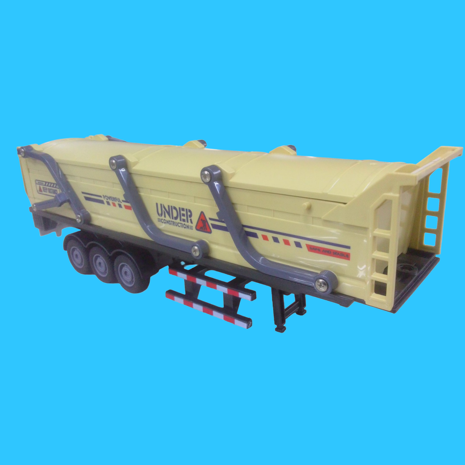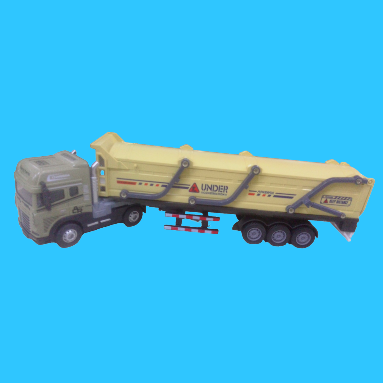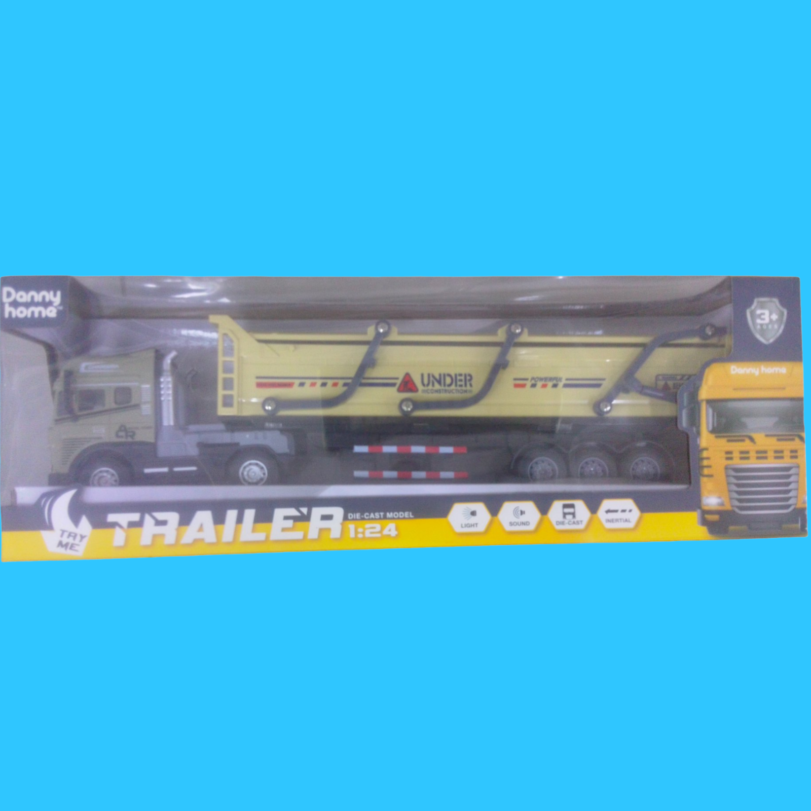 TRÁILER DE METAL, VAGON CON TAPA SUPERIOR Y OTRA ATRÁS, USA BATERÍAS 2 AG13, TIENE SONIDO DE TRAILER, DE ARRANQUE, ENCENDIDO DEL CAMIÓN, LUCES, CORRE A FRICCIÓN.