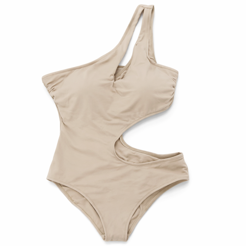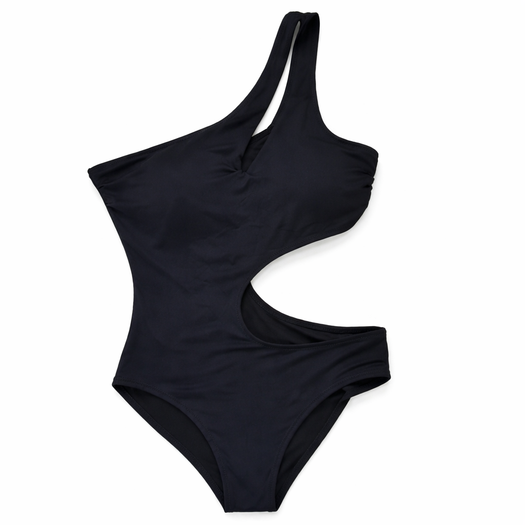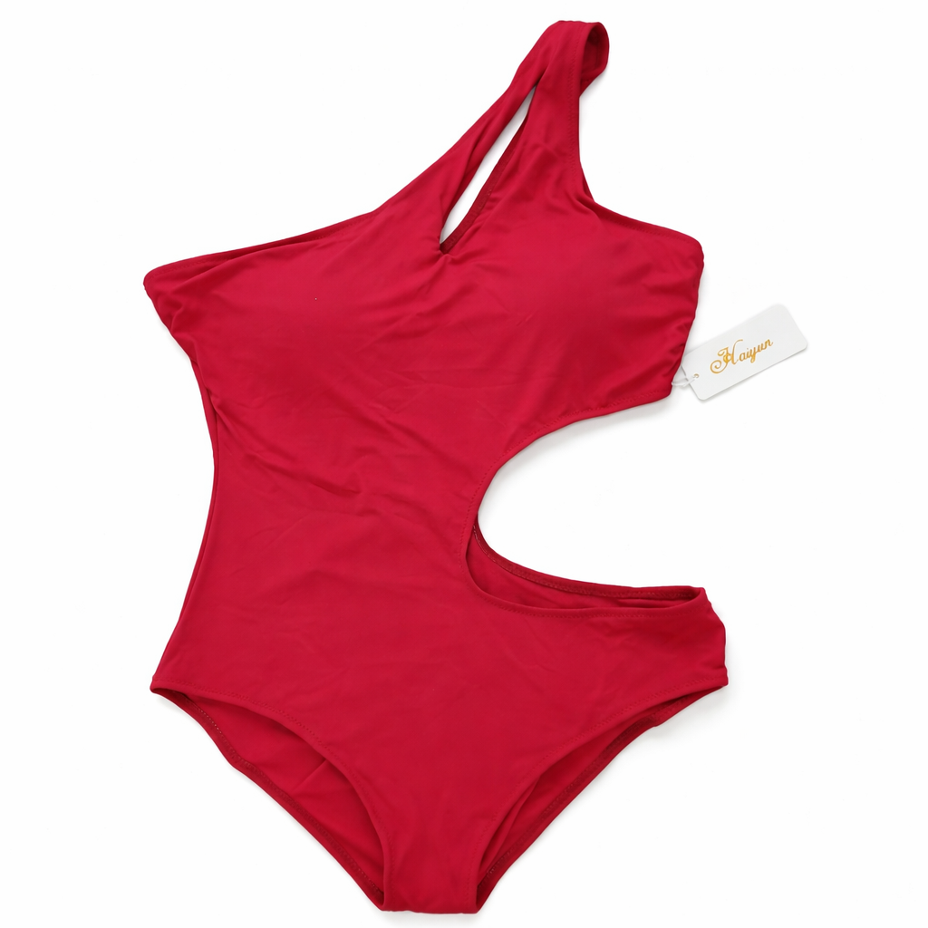 Traje de baño enterizo en vibrante tono rojo con diseño asimétrico de un solo hombro y corte lateral que estiliza la figura. Perfecto para un look moderno, elegante y llamativo en la playa o piscina.